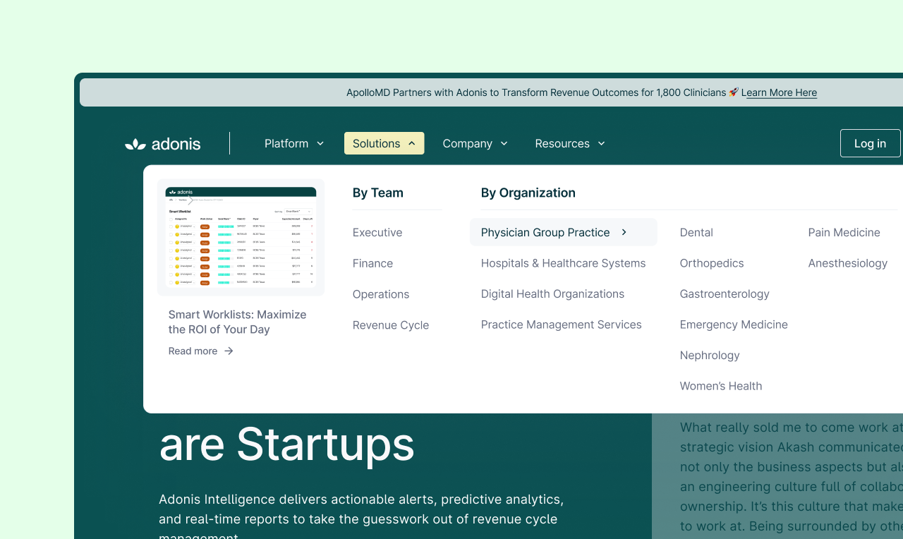 Adonis, a leading provider of revenue cycle management (RCM) solutions for healthcare organizations, sought to transform their website into a true marketing powerhouse.