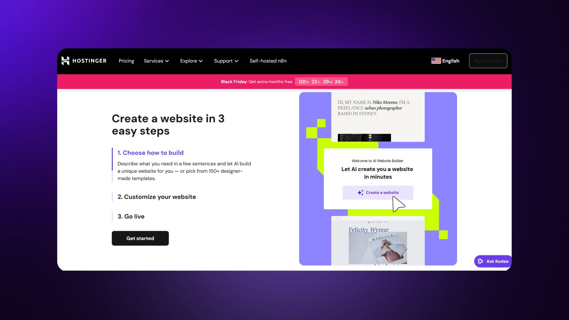 Hostinger offers a tool that uses smart technology to help people build sites quickly with basic designs. It's built for those whose main concern is keeping costs low.