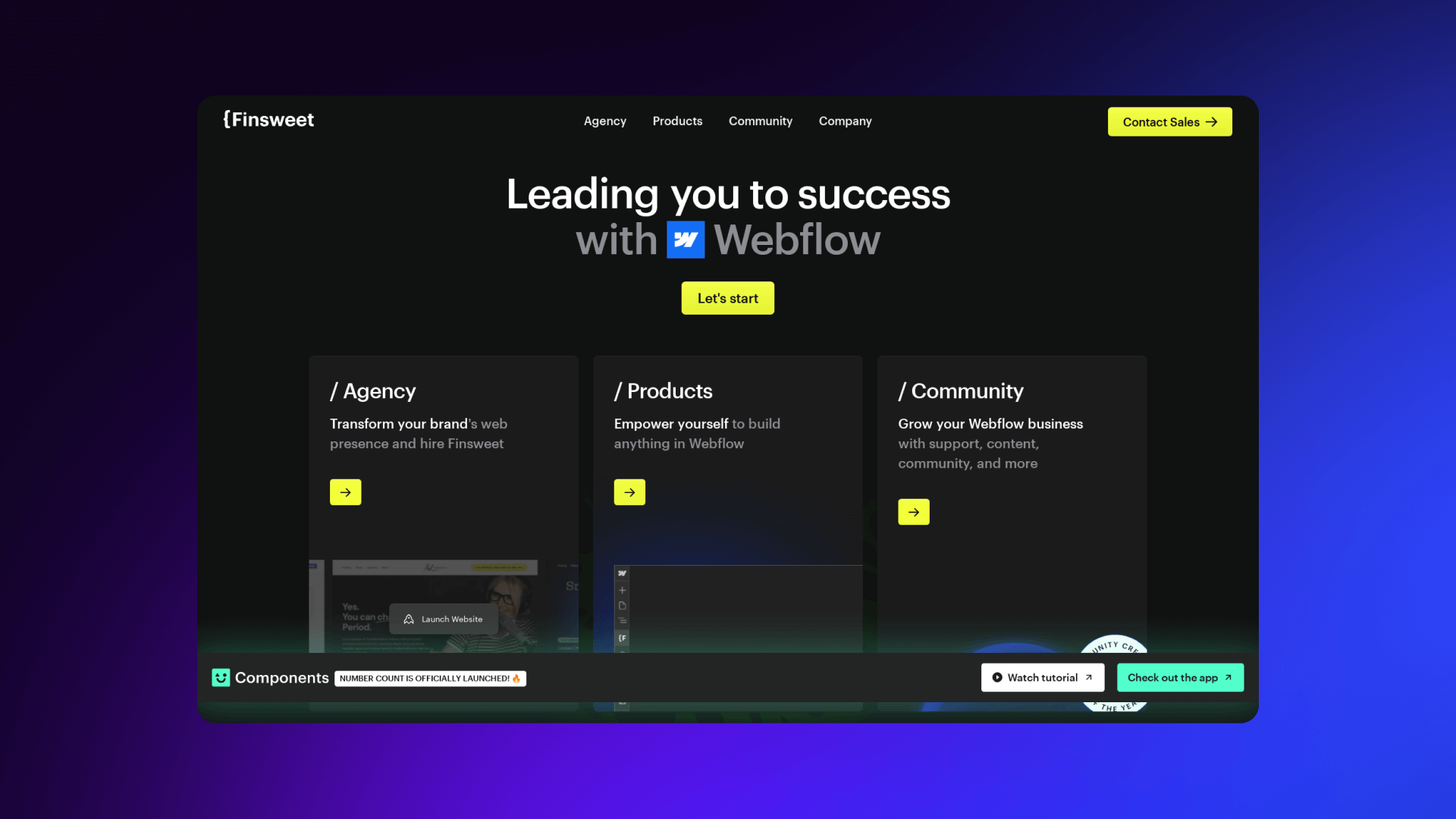 A big name in the Webflow community, Finsweet is renowned for its deep expertise and extensive library of resources. They're not just an agency essentially they are a resource hub. They offer a range of services, from design and development to Webflow training, helping others to master the platform. Their contributions to the Webflow community make them a really trusted authority.