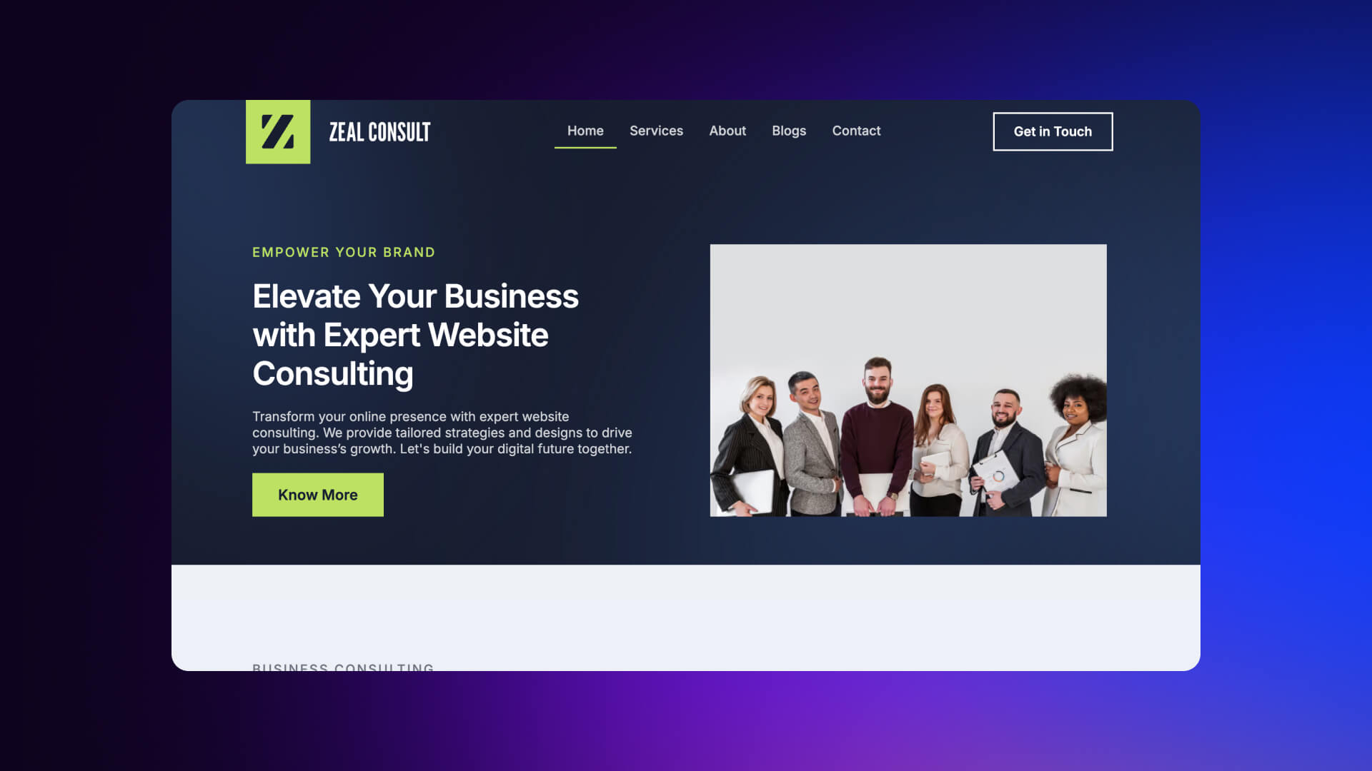- Services section to highlight offerings