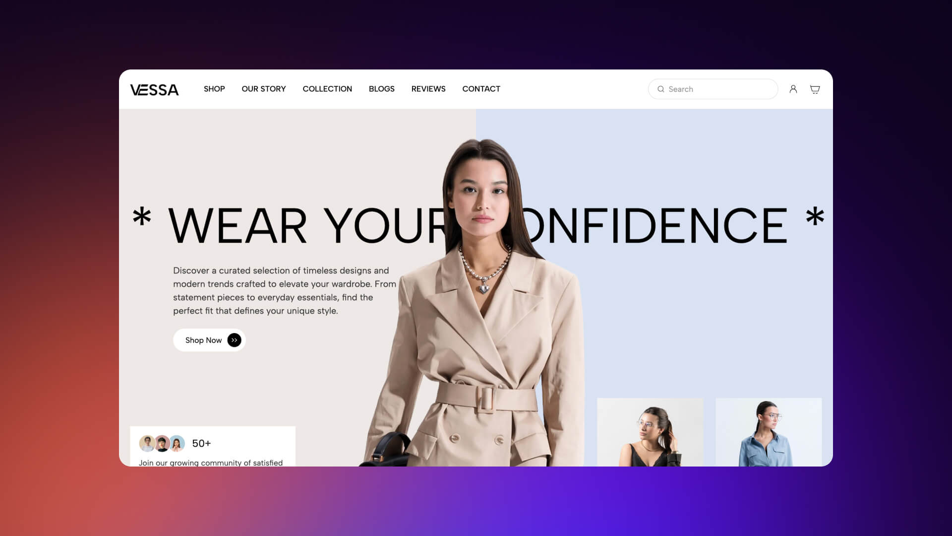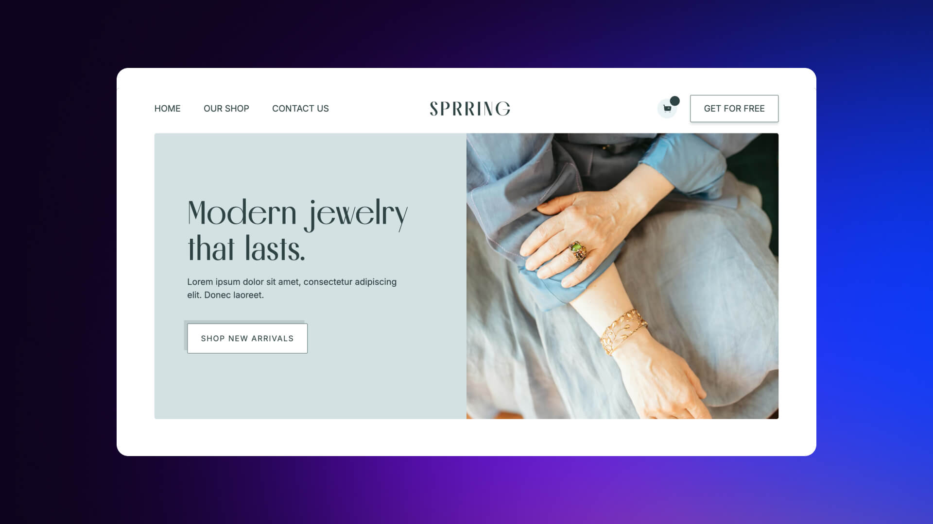 - Modern design tailored to jewelry and beauty brands