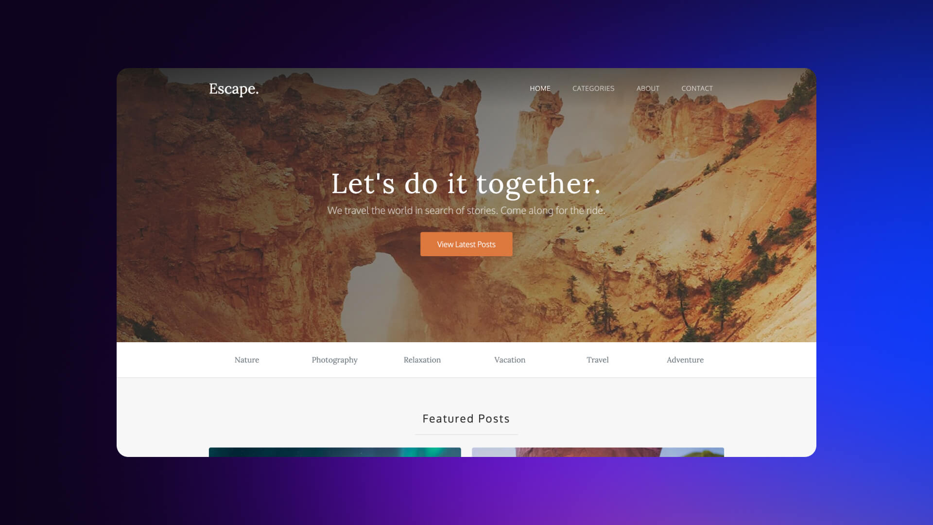 - Unique homepage with a custom hero section
