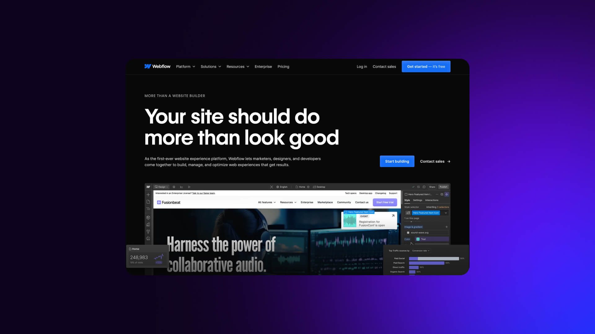 What is Webflow, you may ask? Webflow website builder is an all-in-one web design and development platform that has changed the way web developers build websites. Unlike many traditional site builders that require extensive coding, Webflow is a no-code platform that lets teams design and build a professional website visually.